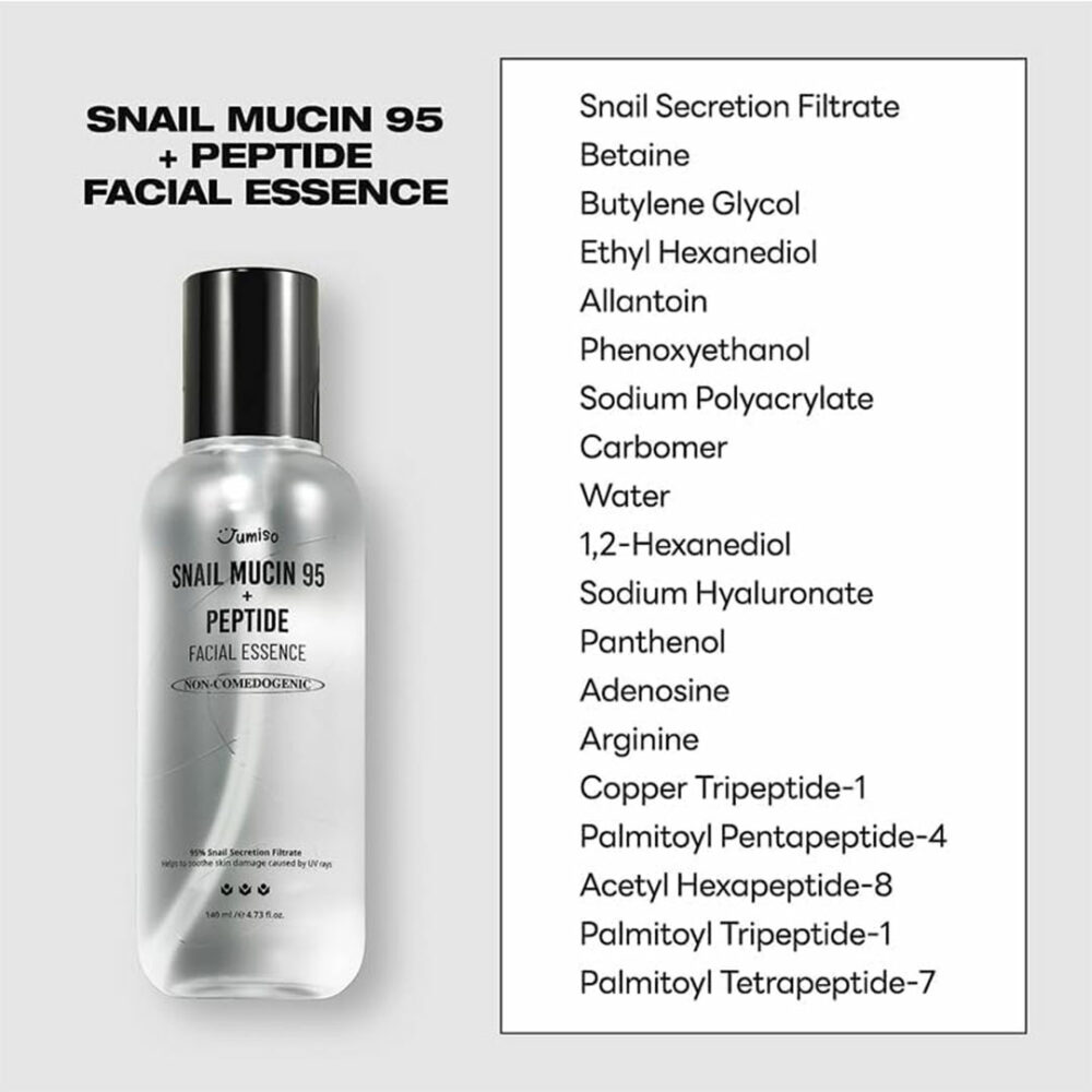 حاوی 95% موسین حلزون که به دلیل خاصیت بازسازی کننده آن مشهور است و می تواند ظاهر چین و چروک و جای زخم را کاهش دهد