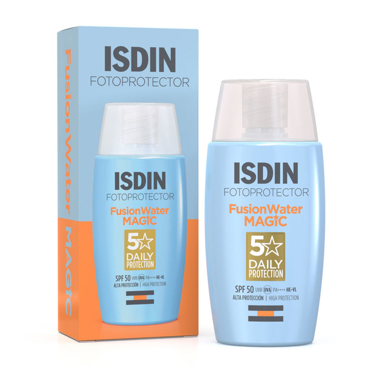 ضدآفتاب فیوژن واتر مجیک ایزدین (ISDIN Fusion Water Magic SPF 50) نسل جدیدی از کرمهای ضدآفتاب بر پایهی آب است که با تکنولوژی نوآورانهی Fusion Technology™، محافظتی سبک، بدون چربی و کاملاً شفاف روی پوست ایجاد میکند.