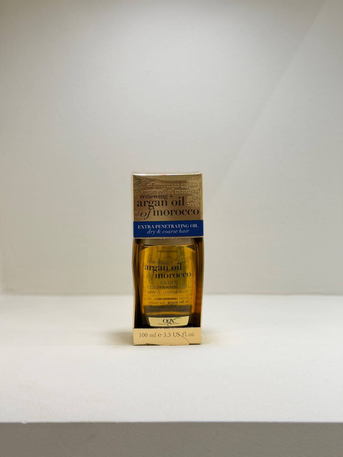 روغن آرگان مراکشی او جی ایکس OGX مدل Extra Penetrating، نسخهای غنیتر و غلیظتر از روغن آرگان معمولی است که به طور اختصاصی برای نفوذ به تارهای موی ضخیم و زبر فرموله شده.