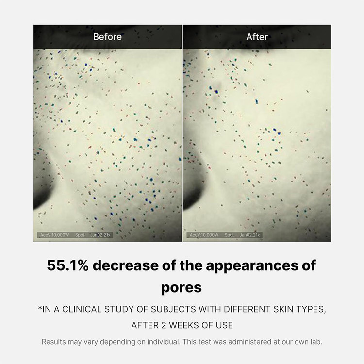 تنها پس از یک بار استفاده، اندازه، حجم و عمق منافذ را تا 55.1٪ کاهش میدهد