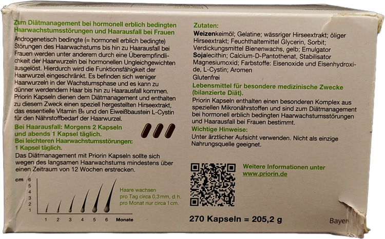 عصاره ارزن: اساس کپسول های Priorin® عصاره ارزن است که در یک فرآیند خاص به دست می آید. ارزن حاوی ویتامین ها و مواد معدنی ضروری به خصوص ترکیبات طبیعی سیلیکون است.