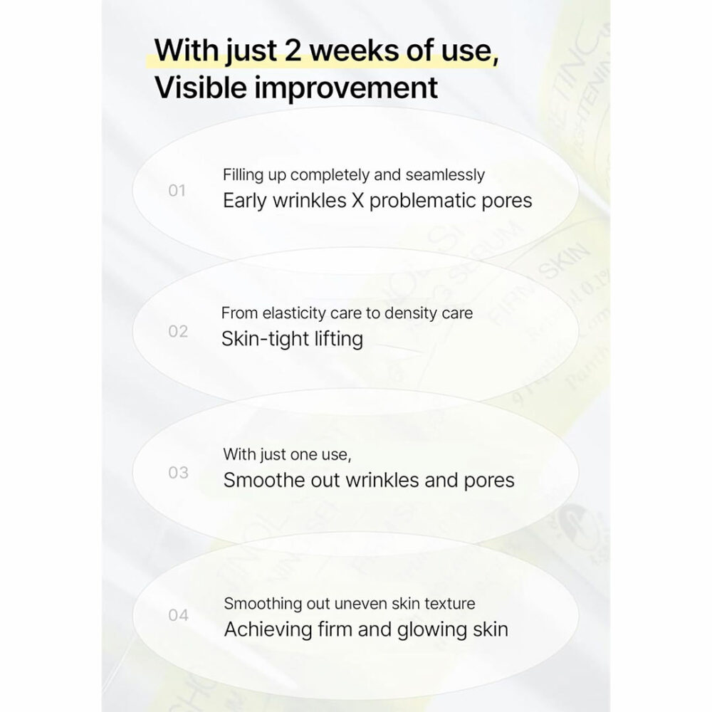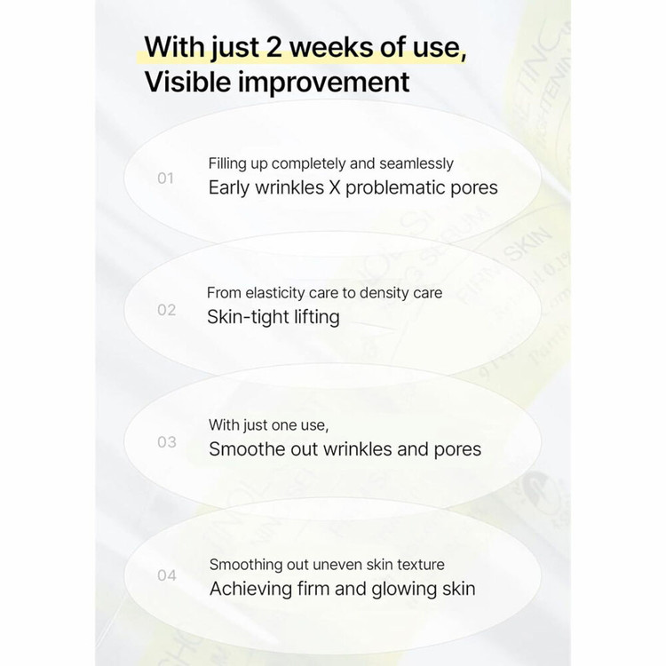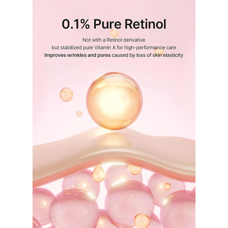 حاوی رتینول خالص ۰.۱٪ که بافت پوست را بهبود میبخشد و خطوط ریز، چین و چروک و منافذ را کاهش میدهد.