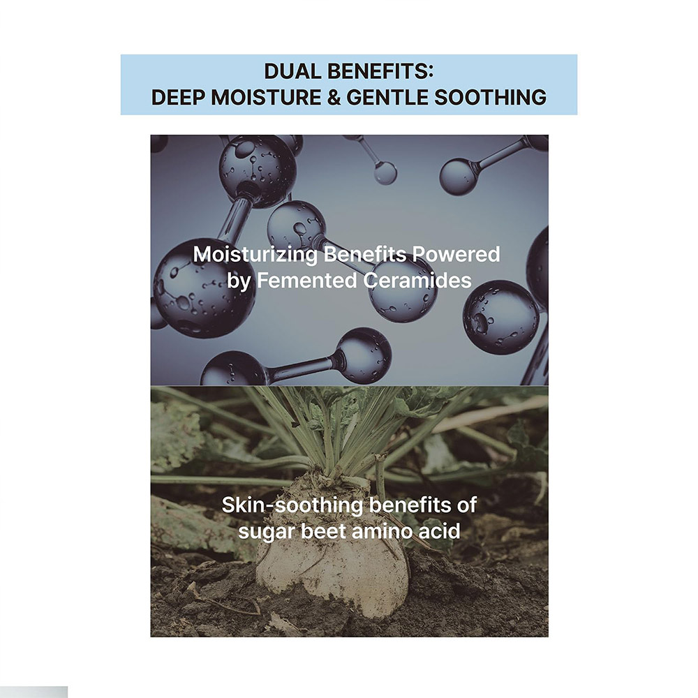 حاوی مواد طبیعی از جمله سرامید و اسید آمینه برای رطوبت رسانی و تسکین پوست